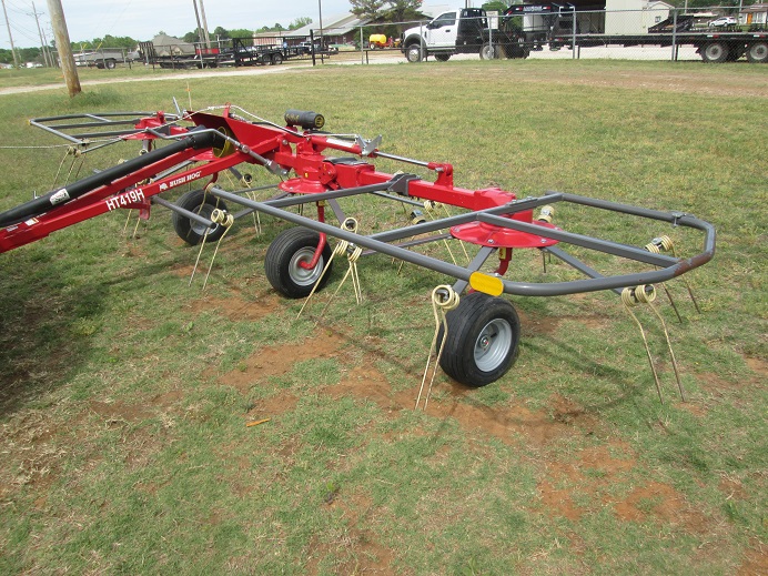 Bush Hog Hay Tedder, Model# HT419H, 2023 Year Model, Like New, Used One Time, 19′ Working Width, 24 Tines, Slip Clutch, 540 PTO, Hydraulic Wings, Easy To Adjust, 940-206-2809 or 940-300-6703
