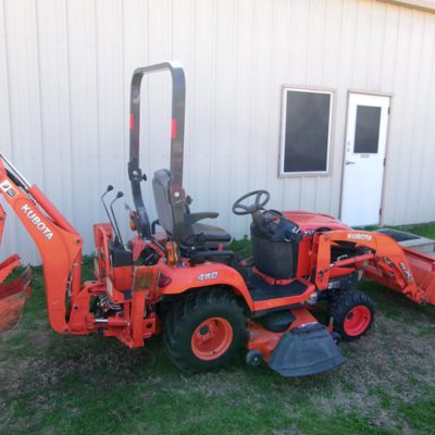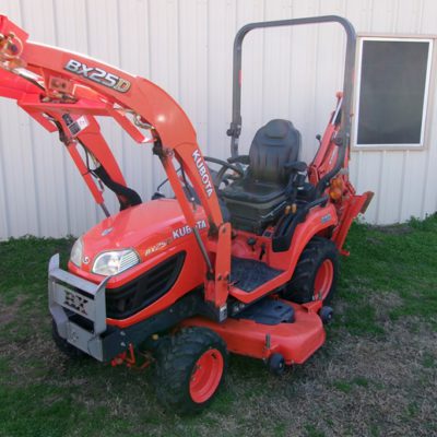 Kubota BX25D TLB (Tractor Loader Backhoe), 2014 Year Model, Commercial Grade, 23HP, 3 Cylinder Diesel, 4WD, HST Hydrostate Transmission, Power Steering, Rear 3 Point Hitch & PTO, LA240 Kubota Front Loader With Quick attach Bucket & Pallet Forks, 60″ Quick attach Belly Mower, BT602 Kubota Quick Attach Backhoe With 12″ Bucket, Digging Depth 6’1″, Seat Spins Around So You Can Operate The Backhoe Easily, Folding Rops (Roll Bar) RTR 0542 Land Pride Rear PTO Tiller, BB1248 Land Pride Box Blade With Rippers, One Owner, Local Owned, Runs Operates And Drives Really Well, Shop Kept, Just Had A Full Service, Needs Nothing, 910 Original Hours,