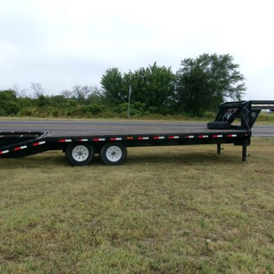 25′ Gooseneck Low Profile 2 Axles Flat Bed Trailer, Manf. PJ Trailers, 2007 Year Model, GVWR 14,000 lbs, Two 7,000 lbs Axles With Trailer Brakes On Both Axles, Length 25′, Fold Over Spring Loaded Ramps, Diamond Plate Tool Box, Dual Spring Loaded Jacks On Front, Spare, Trailer Pulls Real Well, (Winch Is An Extra $250) Sell $4,900 940-206-2809 or 940-300-6703