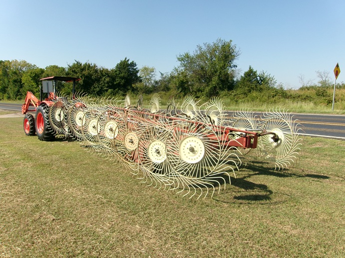 Hesston Hay Rake, Hi-Capacity Hay Rake, 16 Wheel, Model#3991, Hydraulic Wings, Hydraulic Raise & Lower, Maximum Raking Width Of Approx. 21′, Rake Is In Real Good Working Condition, Sell $4,900 940-206-2809 or 940-300-6703