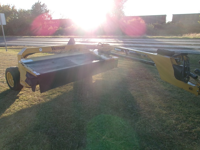 Vermeer TM810 Trailed Disk Mower, Purchased New 2020 From Zimmerer Kubota, 10.5′ Cutting Width, Pull Type, Easy Attach Hook up, 540 PTO, Hyd. Swing Neck, Locally Owned, Shed Kept, Operates & runs Real Well, Needs Nothing, Nice Blades, (Sells New $23,500) Sell $9,900 940-206-2809 or 940-300-6703