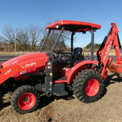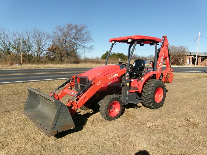 Kubota L47 TLB Purchased New July 2023, Has Extended Warranty Till July 2027, Tractor Loader And Backhoe, 47HP, 4 Cylinder Diesel, 4WD, 6 Speed HST Transmission Hydrostat, Front Loader With Skid Steer Style Quick Attach Bucket, Rear Quick Attach Backhoe With Over 10′ Digging Depth, Also Has Rear 3 Point Hitch + 540 PTO When Backhoe Is Off, This Is One Of Kubota’s Commercial Grade TLB’s, 750 Original Hours, One Owner, Has Been Real Well Taken Care Of, Recently Serviced, Sells New ($65,000 to $70,000) Sell $39,500 940-206-2809 or 940-300-6703